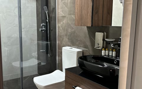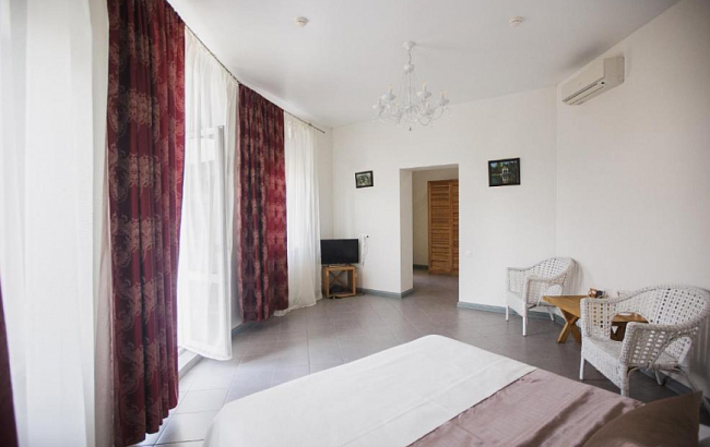 В номере: двуспальная и односпальные кровати, кондиционер, мини-бар, телевизор, телефон, санузел с душем, фен.