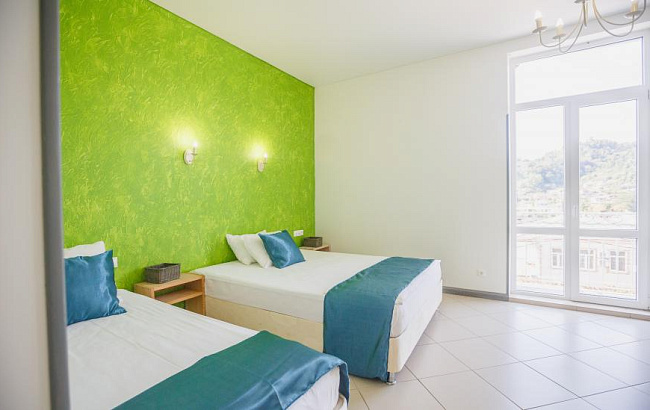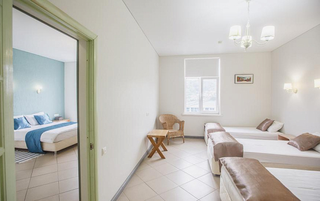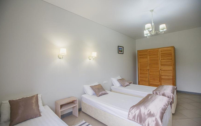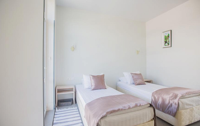 Двухкомнатный номер, состоящий из 2 спален. Подойдет для проживания семьи с детьми. Площадь: 40 кв.м.