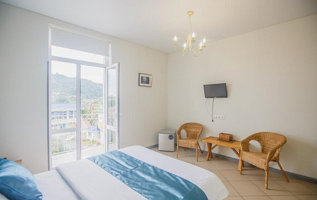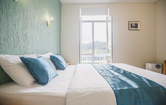 В номере: двуспальная / односпальные кровати, кондиционер, мини-бар, телевизор, телефон, санузел с душем, фен, балкон.